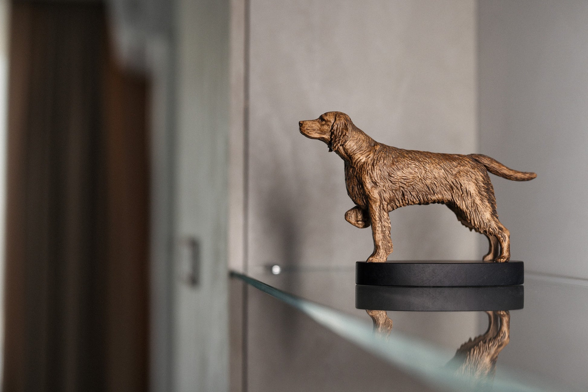 Elegant, gentle, and full of character — this handcrafted English Setter figurine pays tribute to one of the most graceful and affectionate dog breeds. Made from solid beechwood, each piece is CNC-cut with precision and then carefully hand-finished to highlight the Setter’s distinctive silhouette, flowing coat, and noble stance.