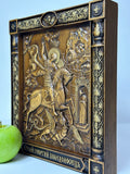 This Wooden Icon of George the Victorious serves as a powerful reminder of strength, faith, and resilience, making it an ideal piece for personal prayer, or to be displayed as a symbol of protection in your home. Its artistic craftsmanship and spiritual significance also make it a thoughtful gift for religious holidays, baptisms, or special celebrations.