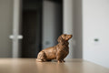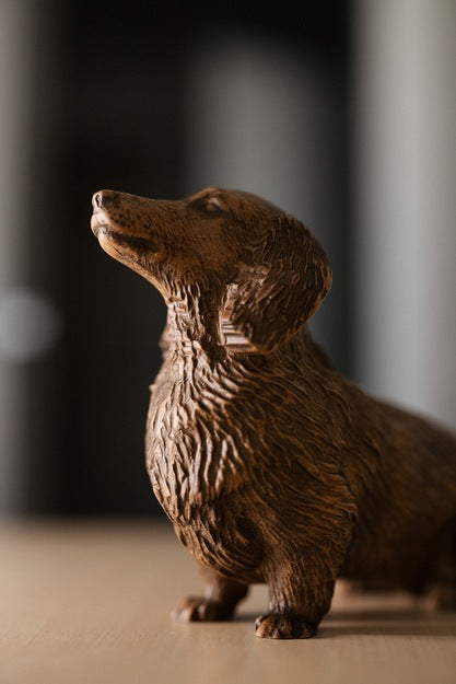 Long-Haired Dachshund Wooden Figurine – Handcrafted Beechwood Dog Sculpture