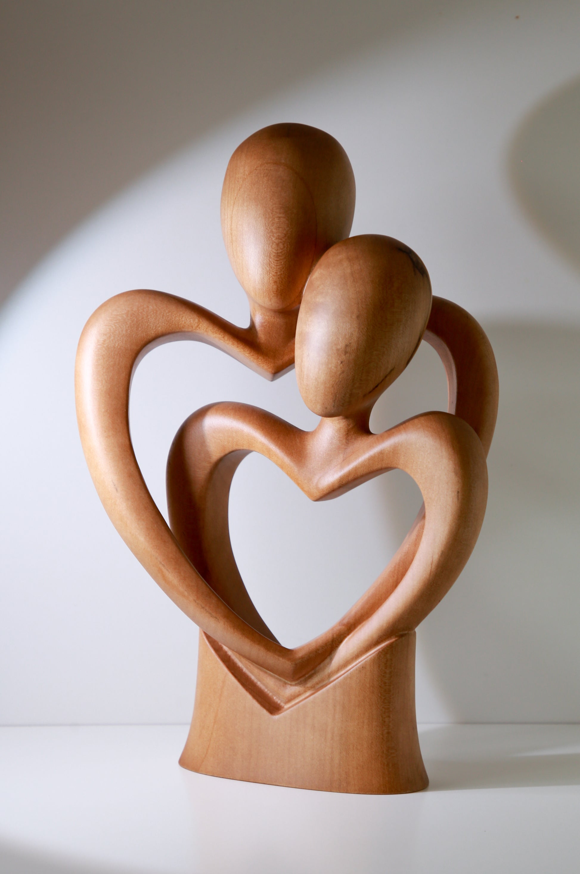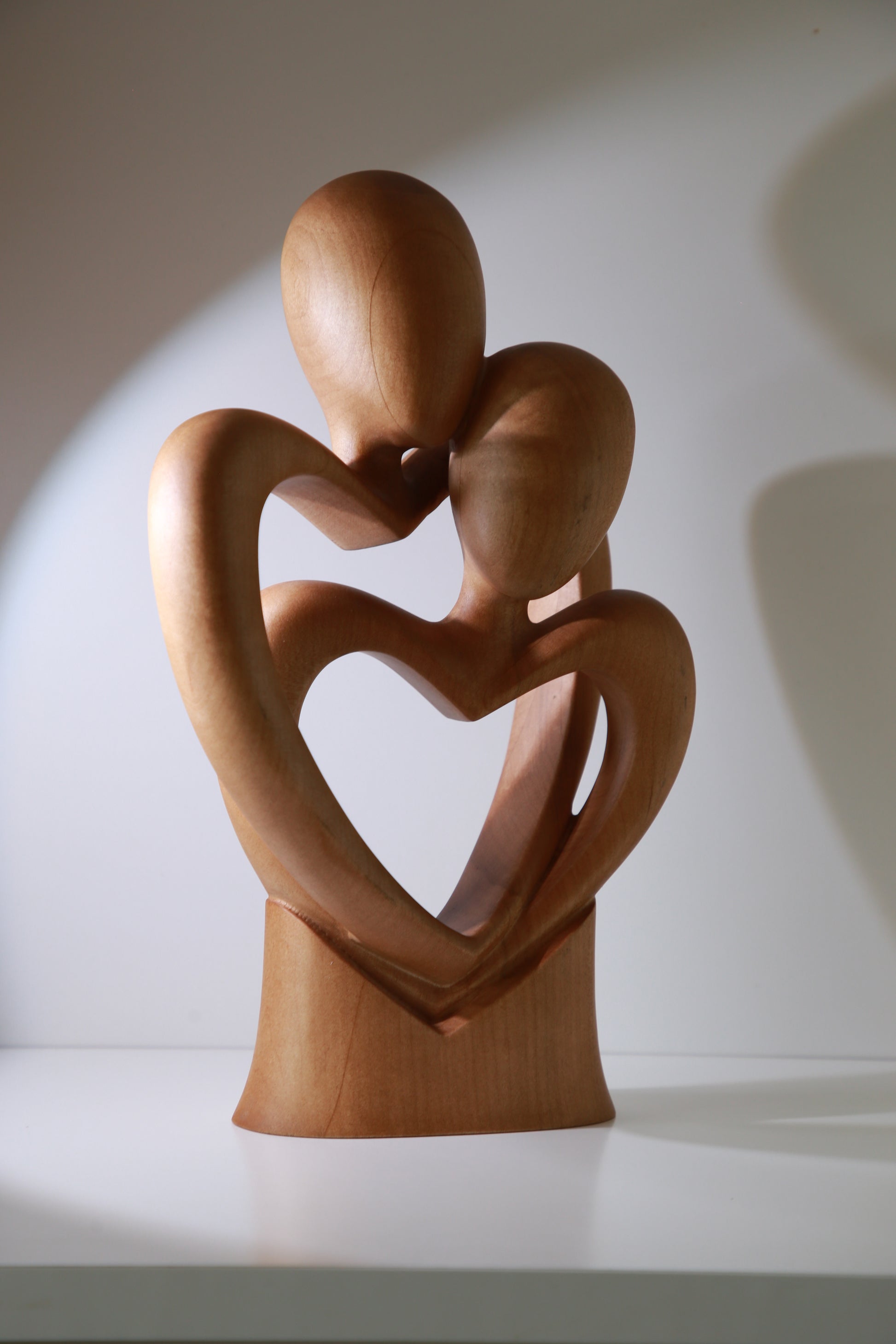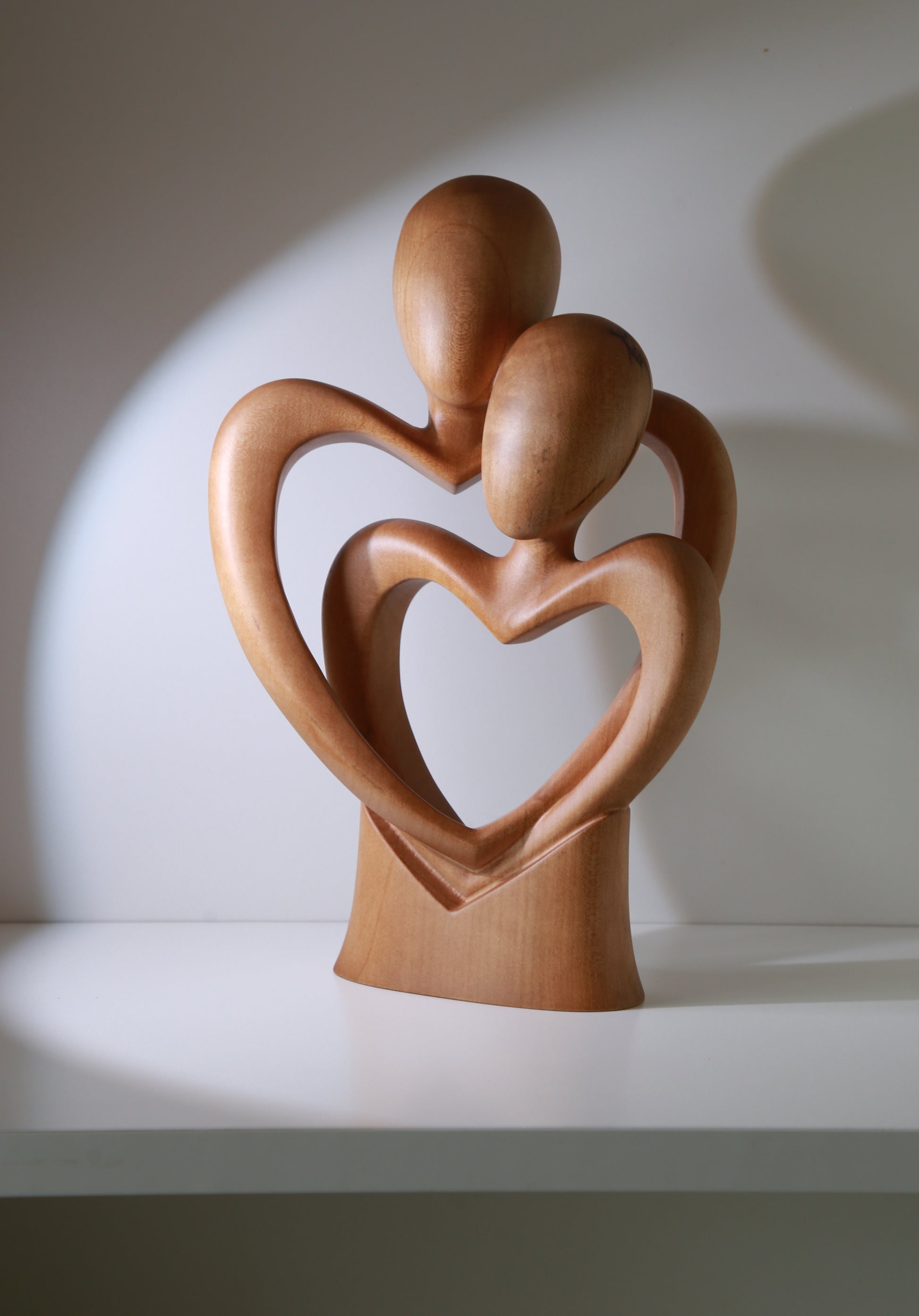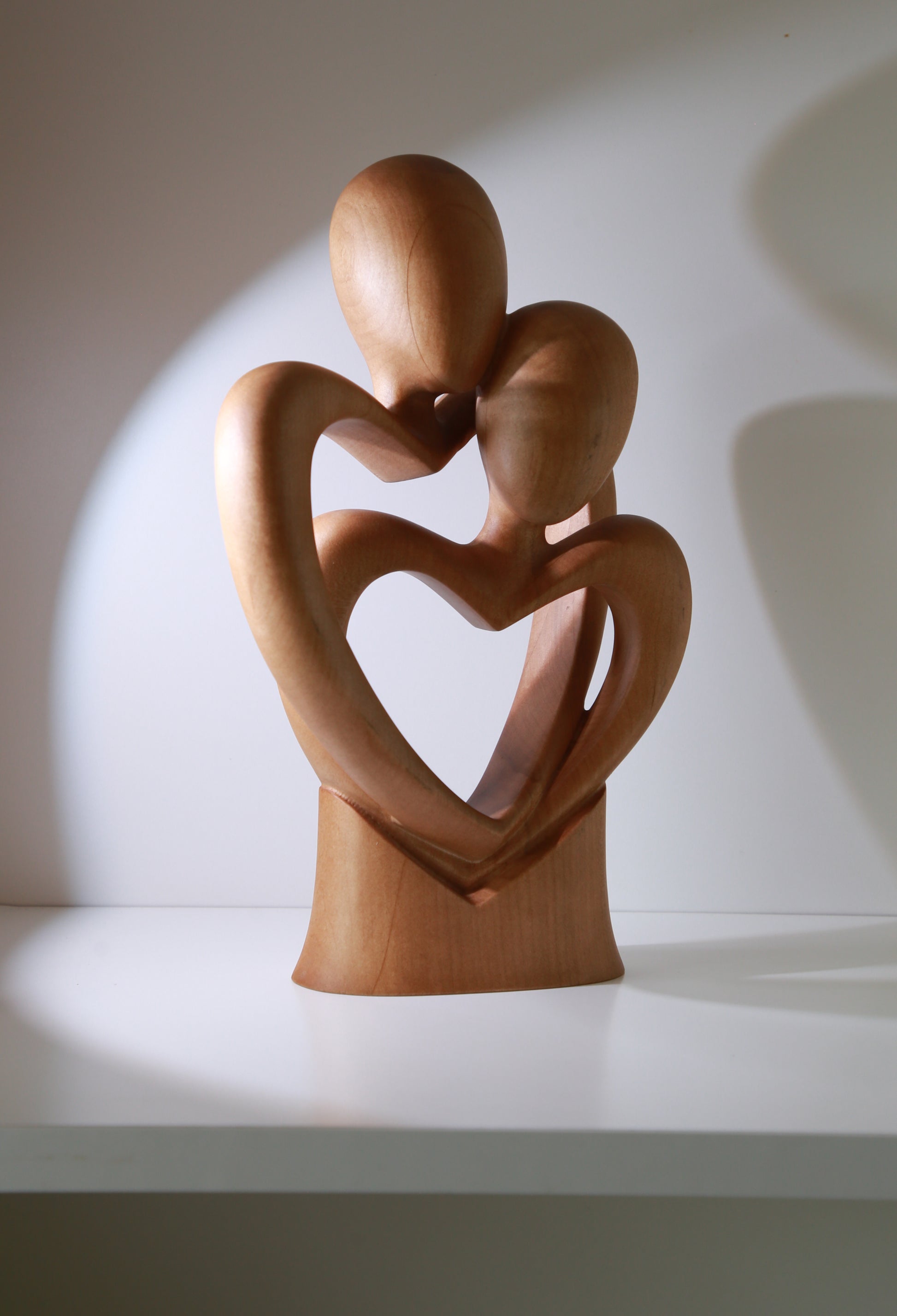 Loving Hearts — Wooden Sculpture of Embrace and Connection