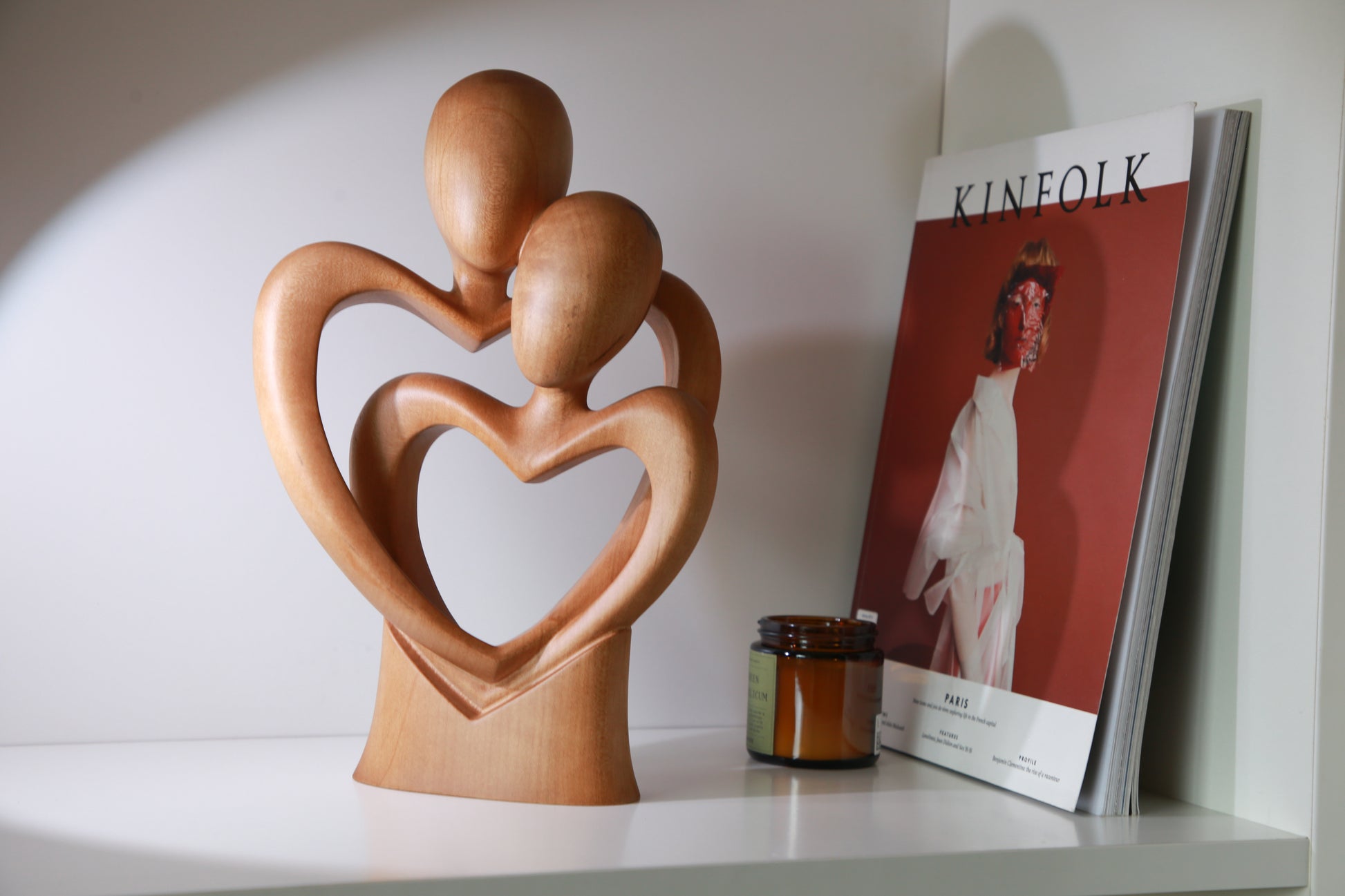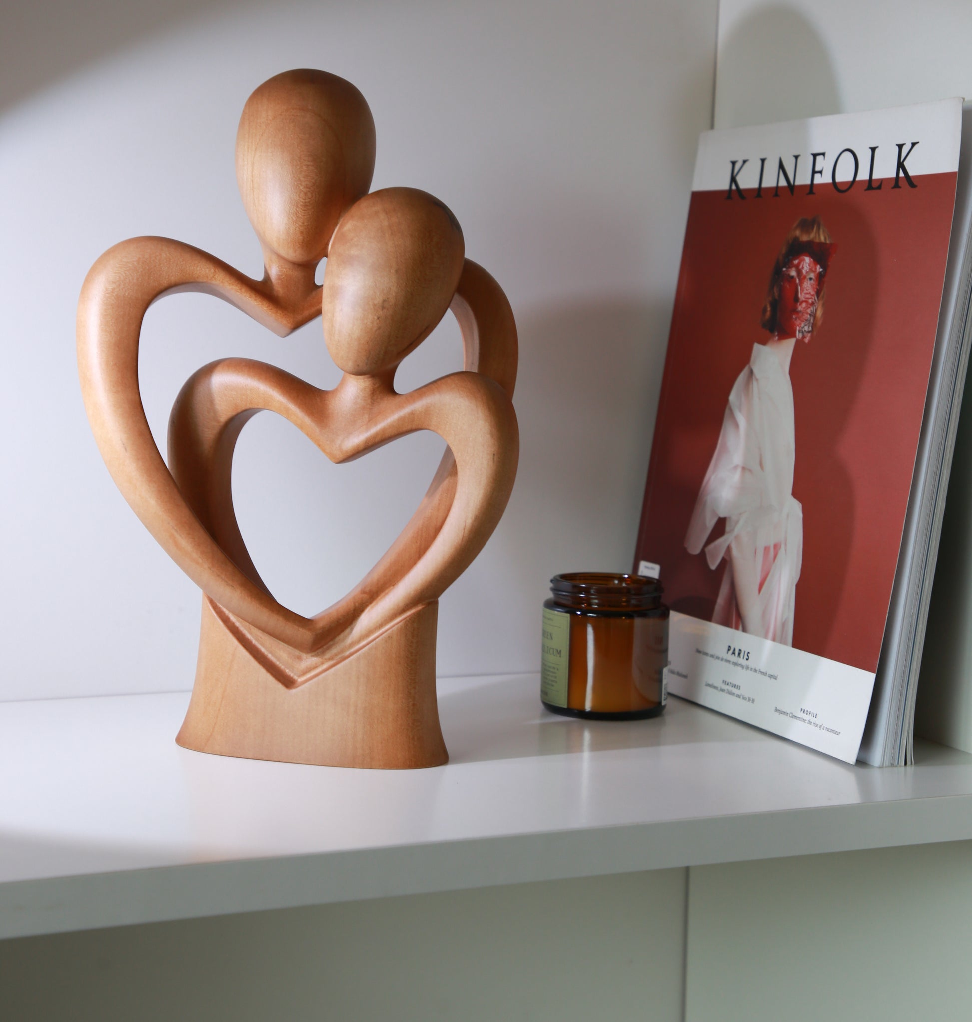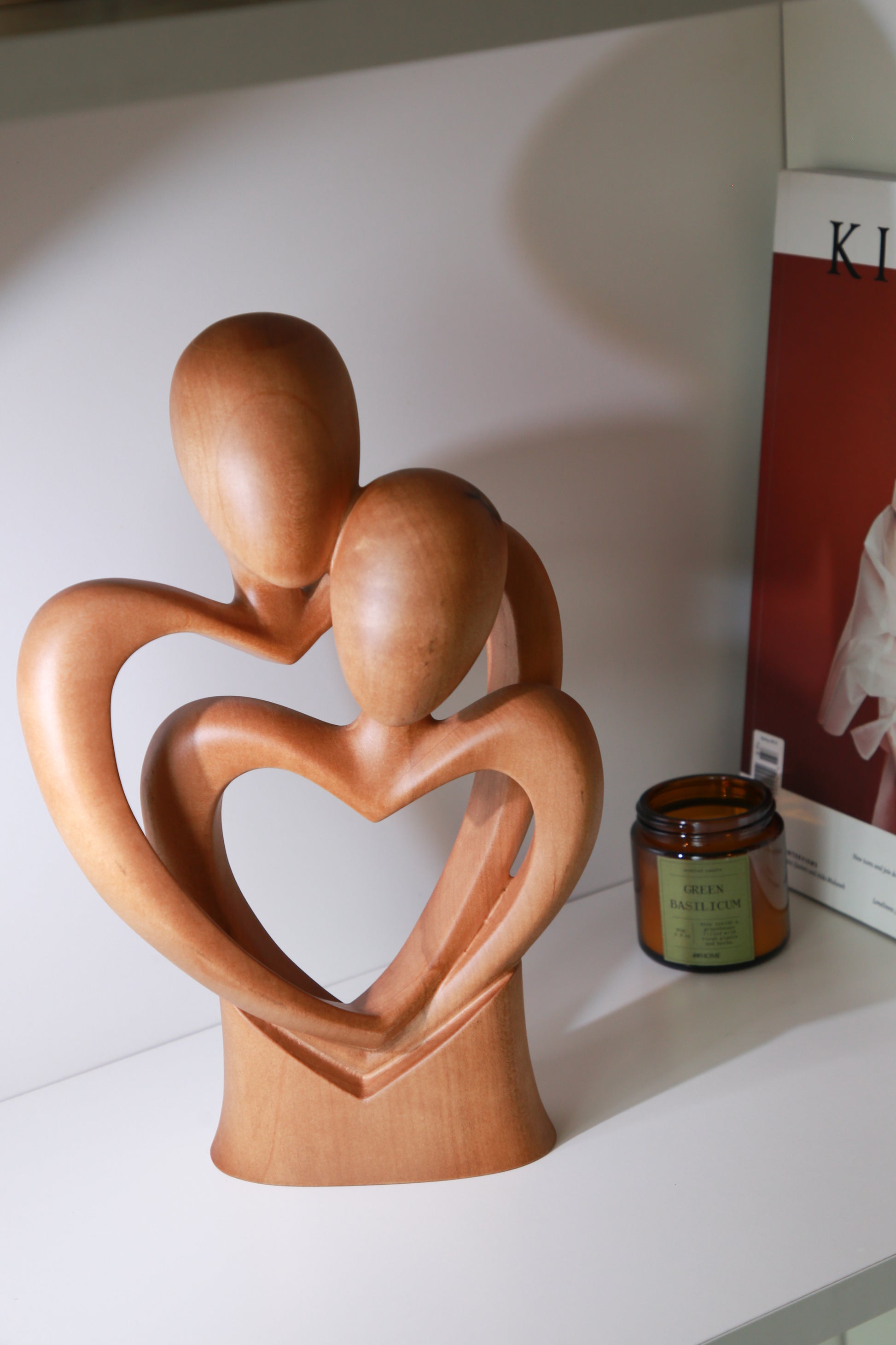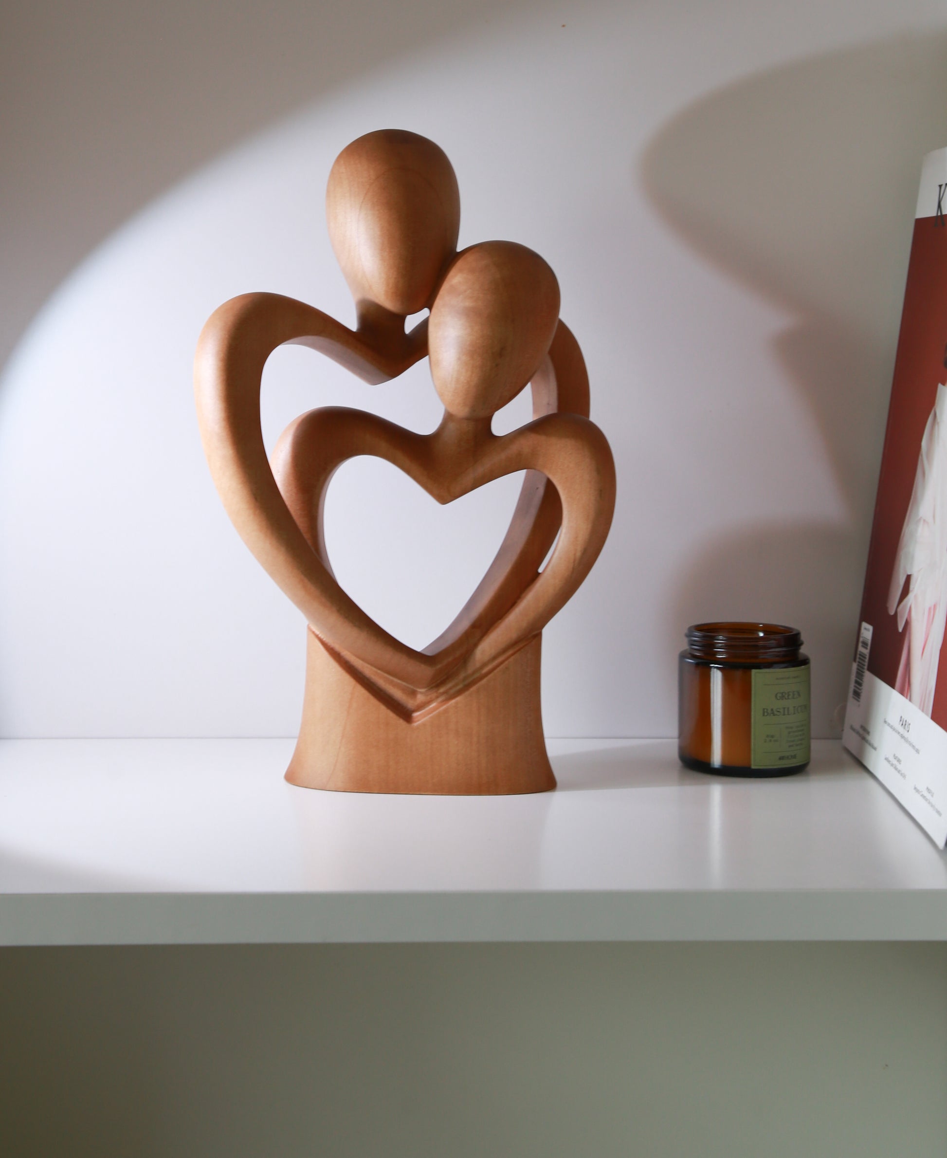 Loving Hearts — Wooden Sculpture of Embrace and Connection