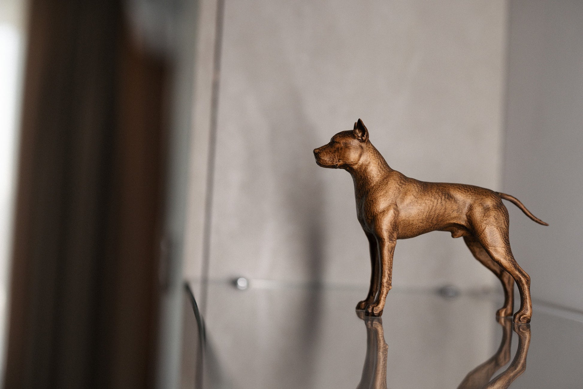 Strong, loyal, and full of heart — this handcrafted Pit Bull (Staffordshire Terrier) figurine pays tribute to the power and devotion of this iconic breed. Carved from solid beechwood, the statue is first precision-cut with CNC technology and then carefully hand-finished to bring out the muscular stance, alert ears, and confident presence of the breed.