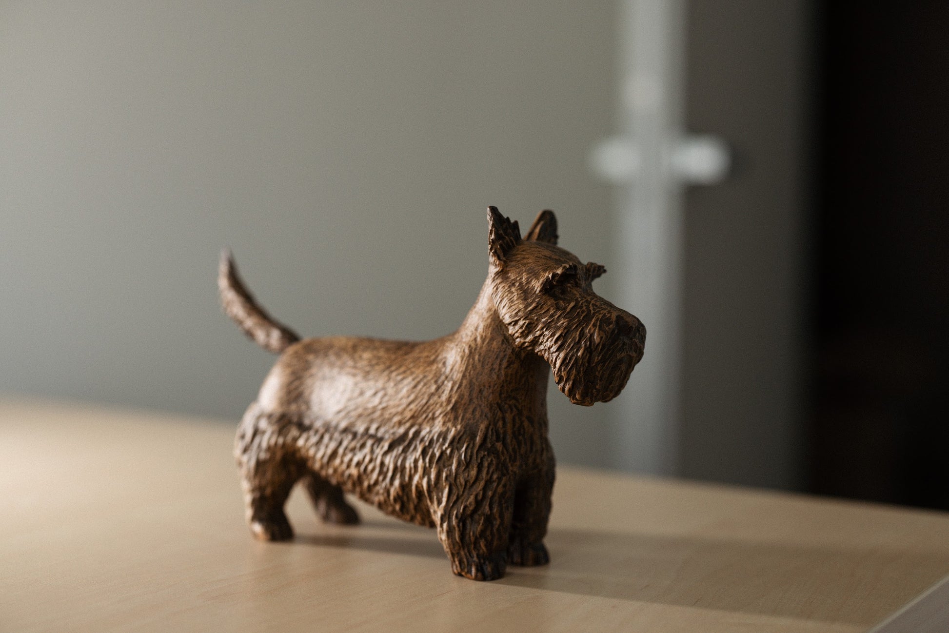 Ideal for pet-themed decor, bookshelf styling, office spaces, or as a handcrafted keepsake for Scottish Terrier owners and fans.