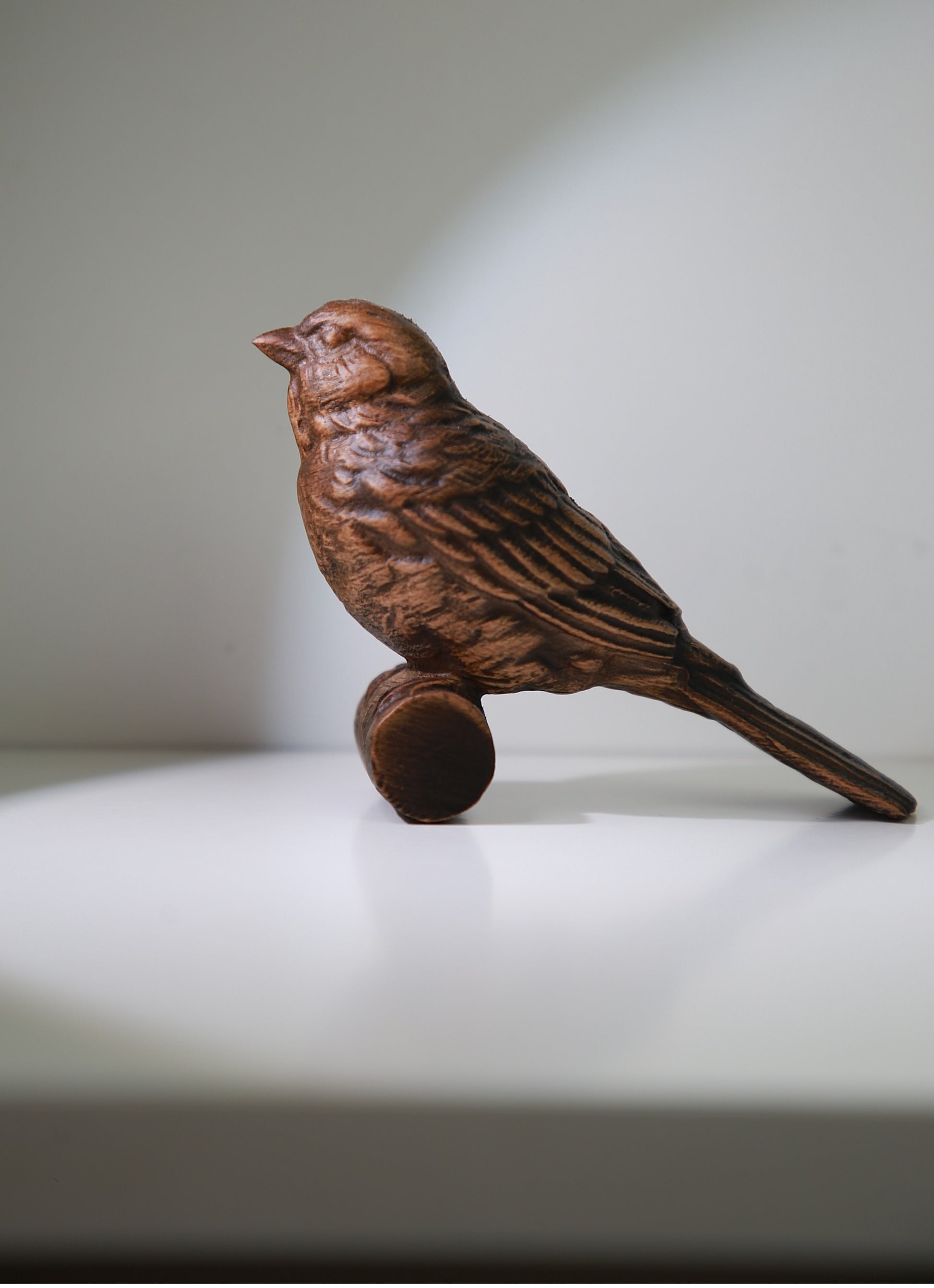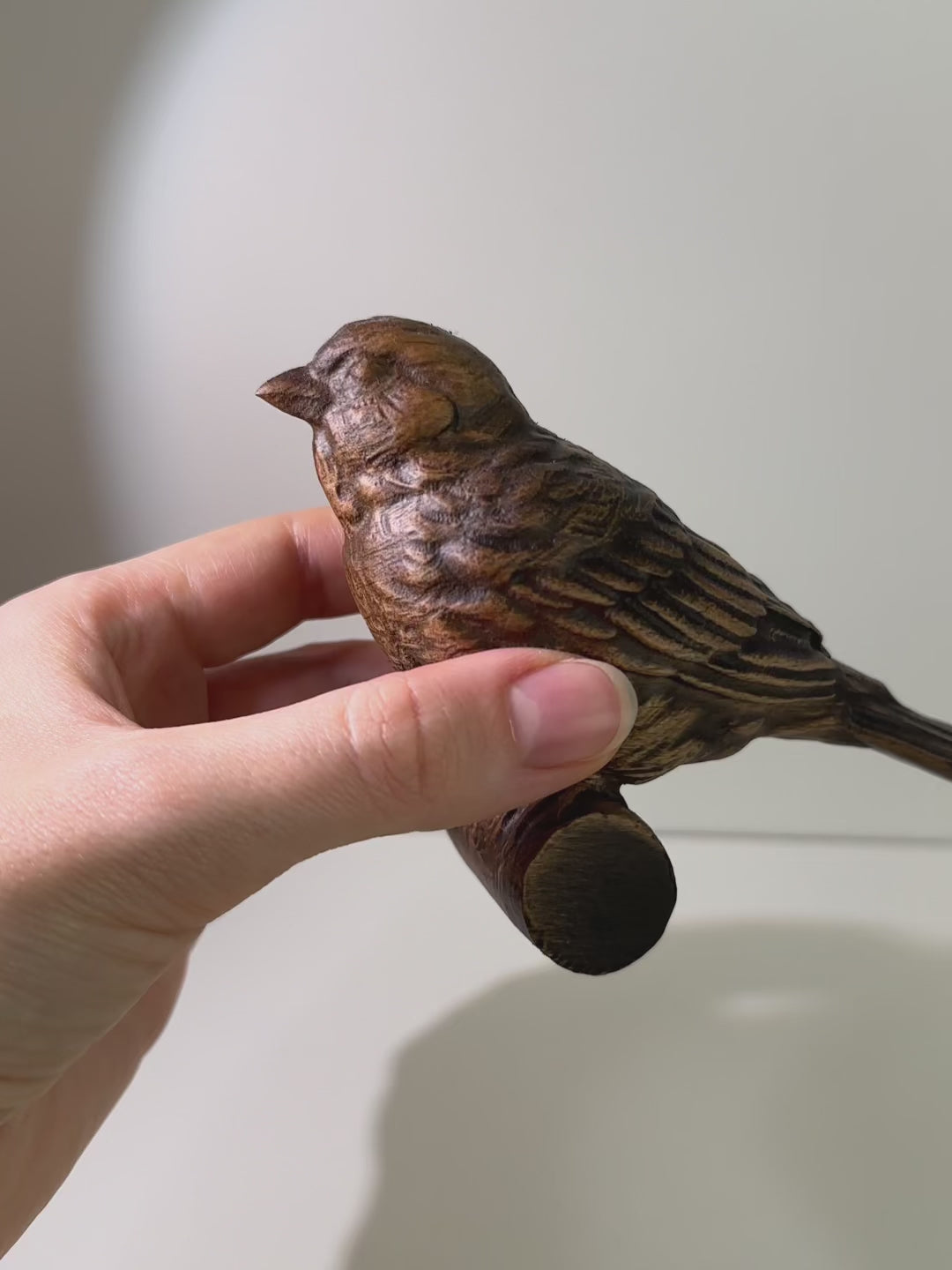 “Sparrow” Wooden Figurine — a charming handmade sculpture crafted from natural beech wood. Representing simplicity, warmth, and everyday joy, this minimalist bird figure is ideal for bringing a touch of coziness to your interior.