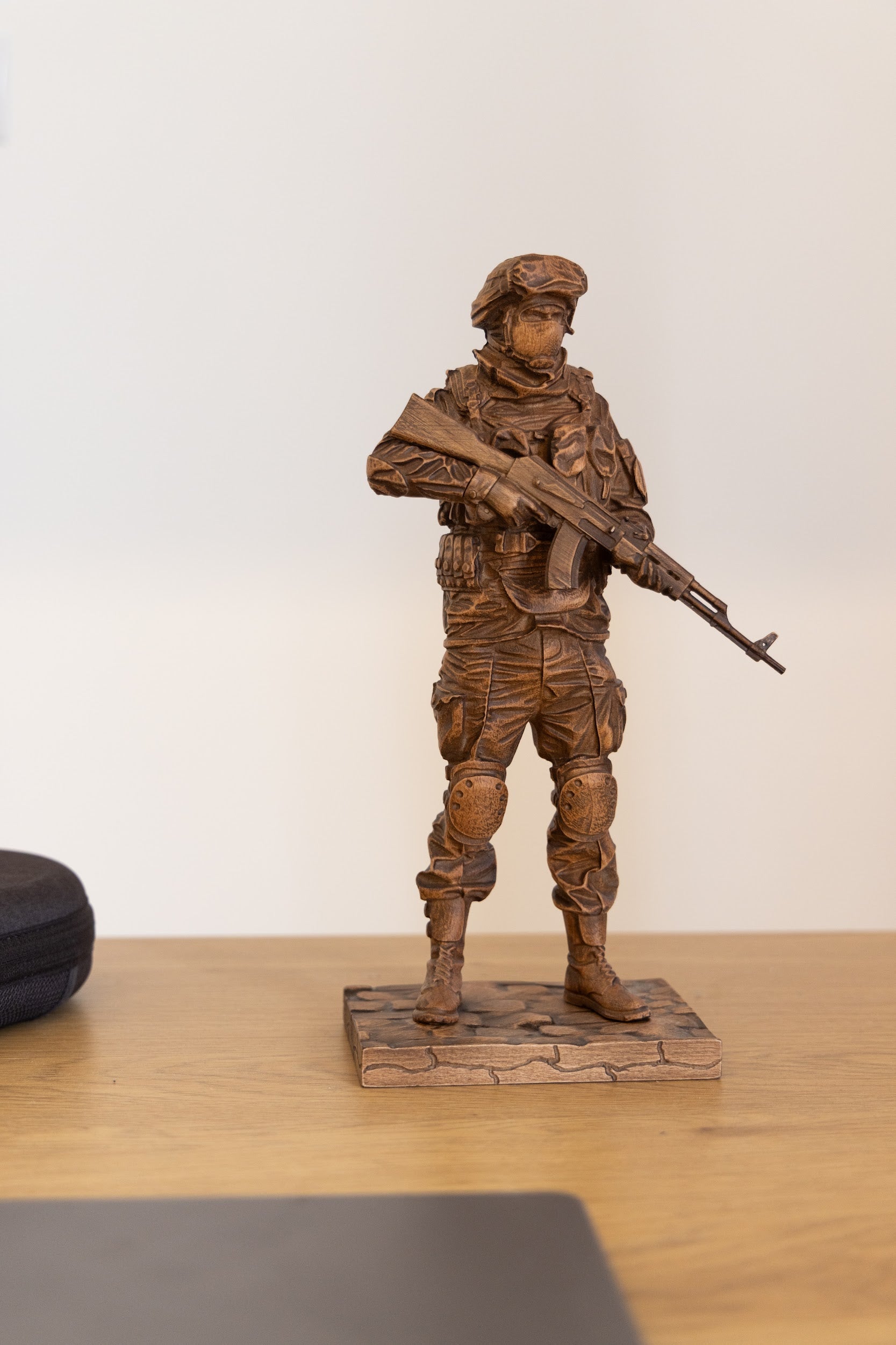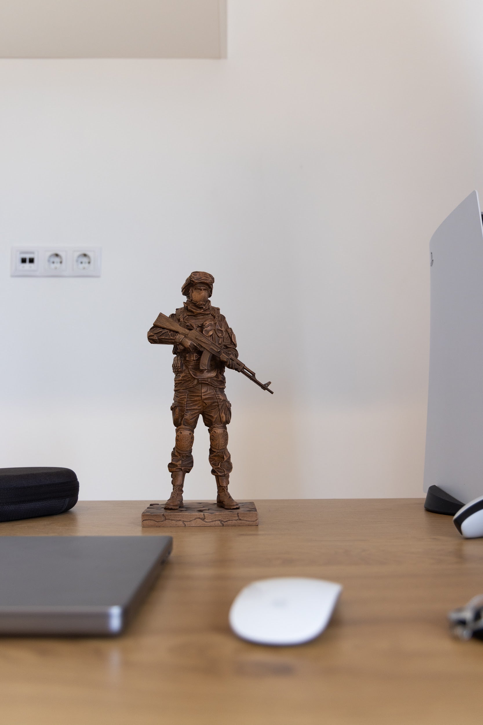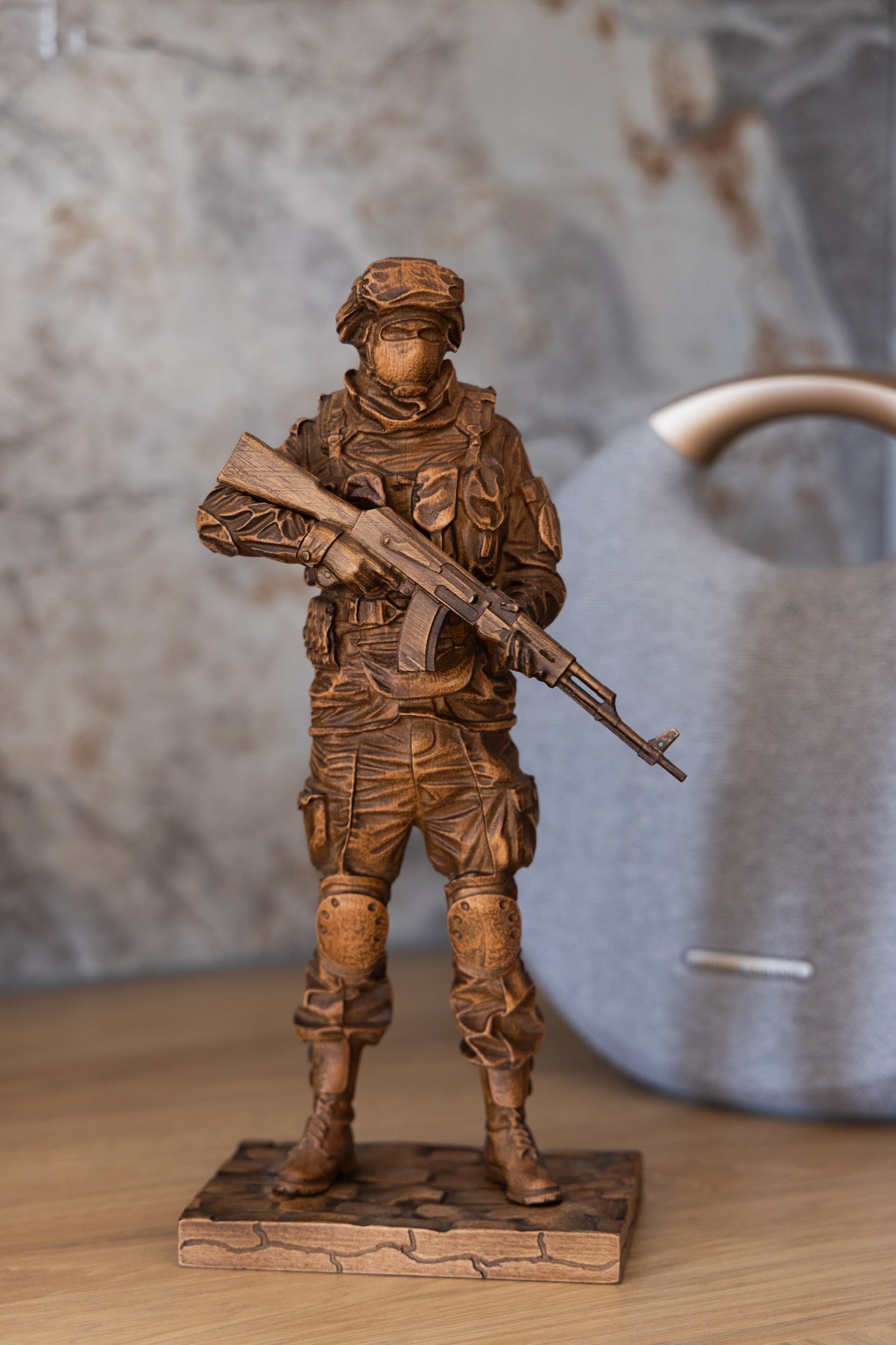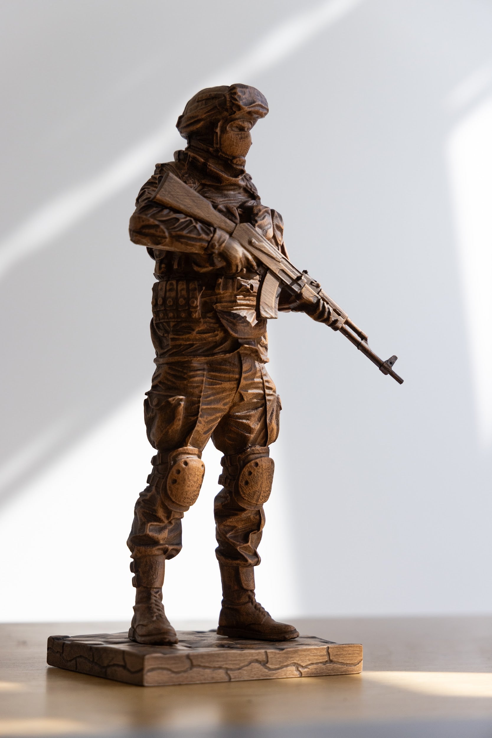 Wood-Carved Soldier Sculpture in two sizes to match your expectations the most. You can get it shipped to any country packed in a sturdy wooden gift box to amaze your loved one with a very special present.