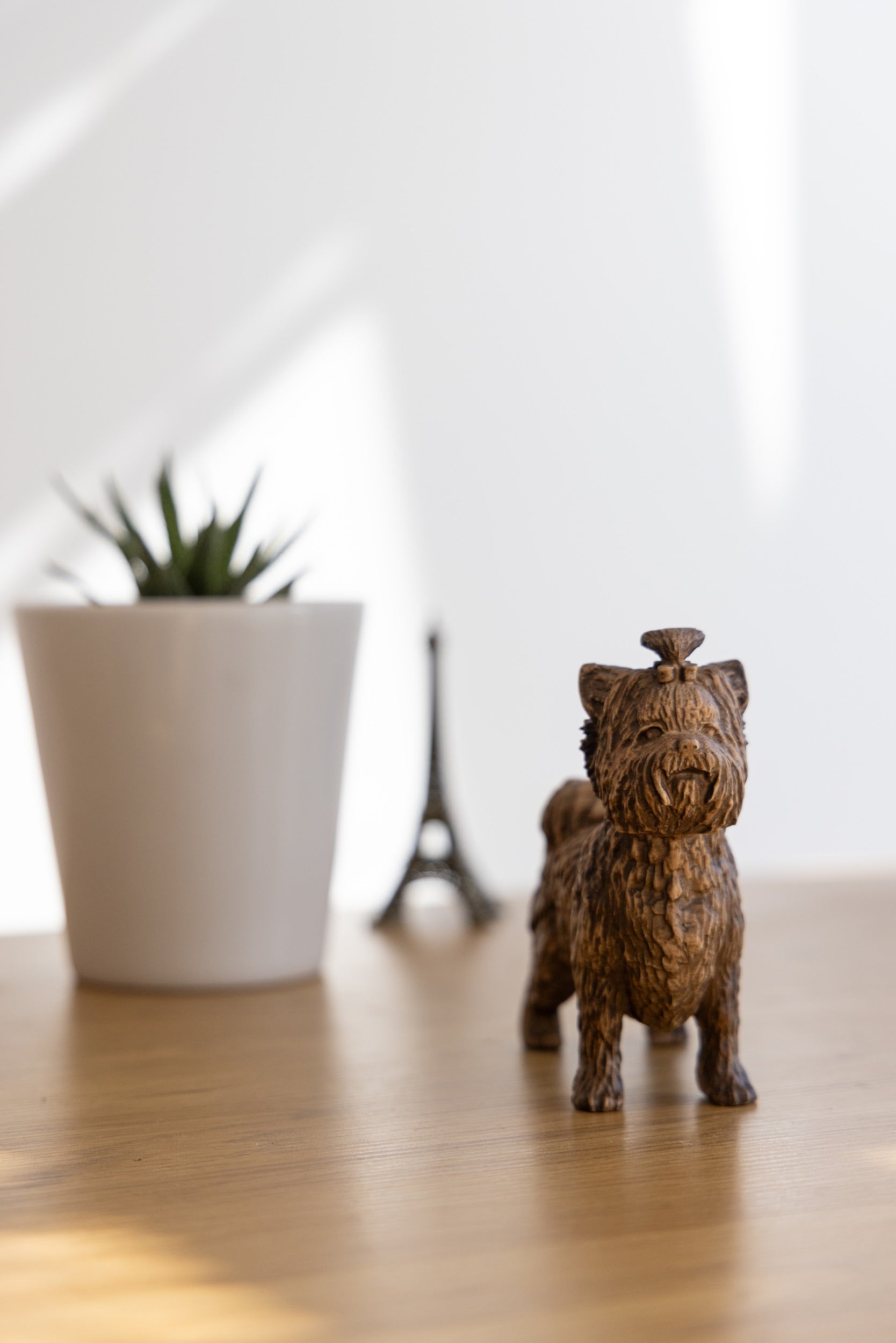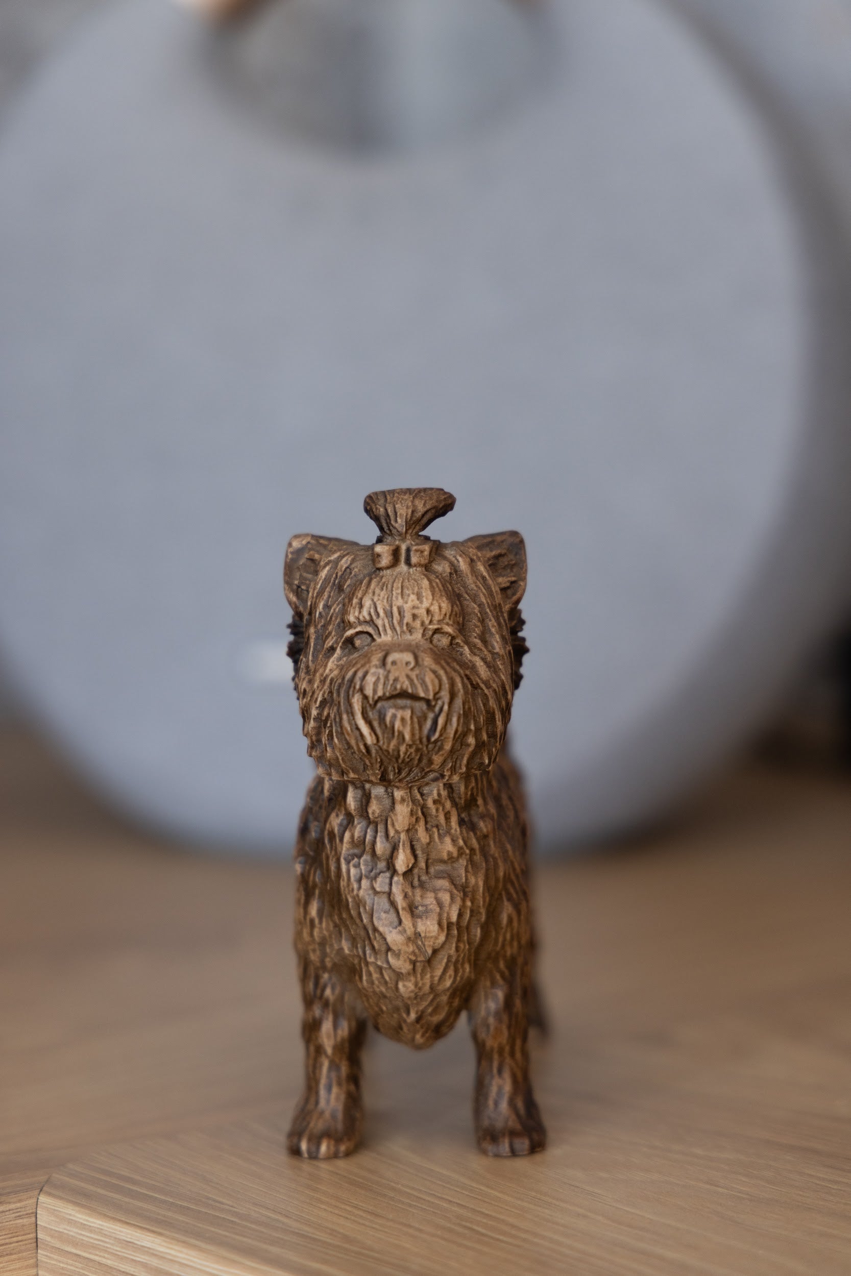 Enjoy the most realistic figurine of one of the favorite dog breeds worldwide, a Wood Carved Statue of a Yorkshire Terrier created by WoodNev!