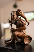Wood Sculpture Joker With Cards & Sculls For Bookshelf Decor