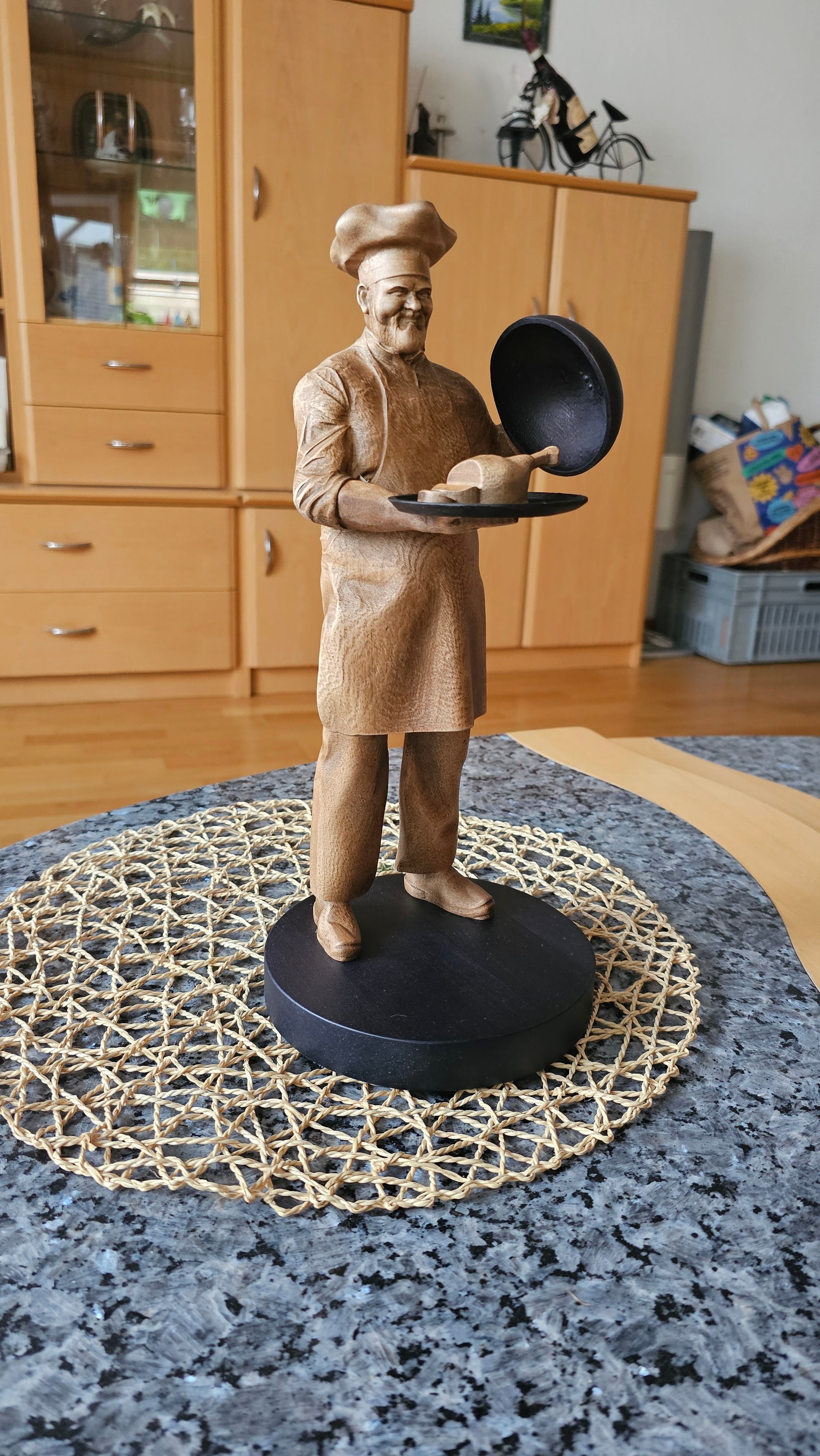 Whether displayed on a kitchen shelf, restaurant counter, or used as a conversation-starting gift for a food lover, this wooden chef adds a playful yet elegant touch to any interior. Ideal for chefs, home cooks, or anyone who appreciates handmade wooden art.