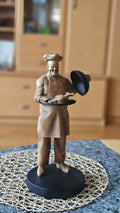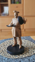 Add a touch of culinary charm to your home or kitchen décor with this handcrafted wooden Chef Figurine. Carefully made from high-quality beech wood, this statue combines modern CNC precision with the soul of hand-carving craftsmanship. The figure depicts a smiling chef proudly presenting a roasted chicken on a tray, captured in a lively and expressive pose.