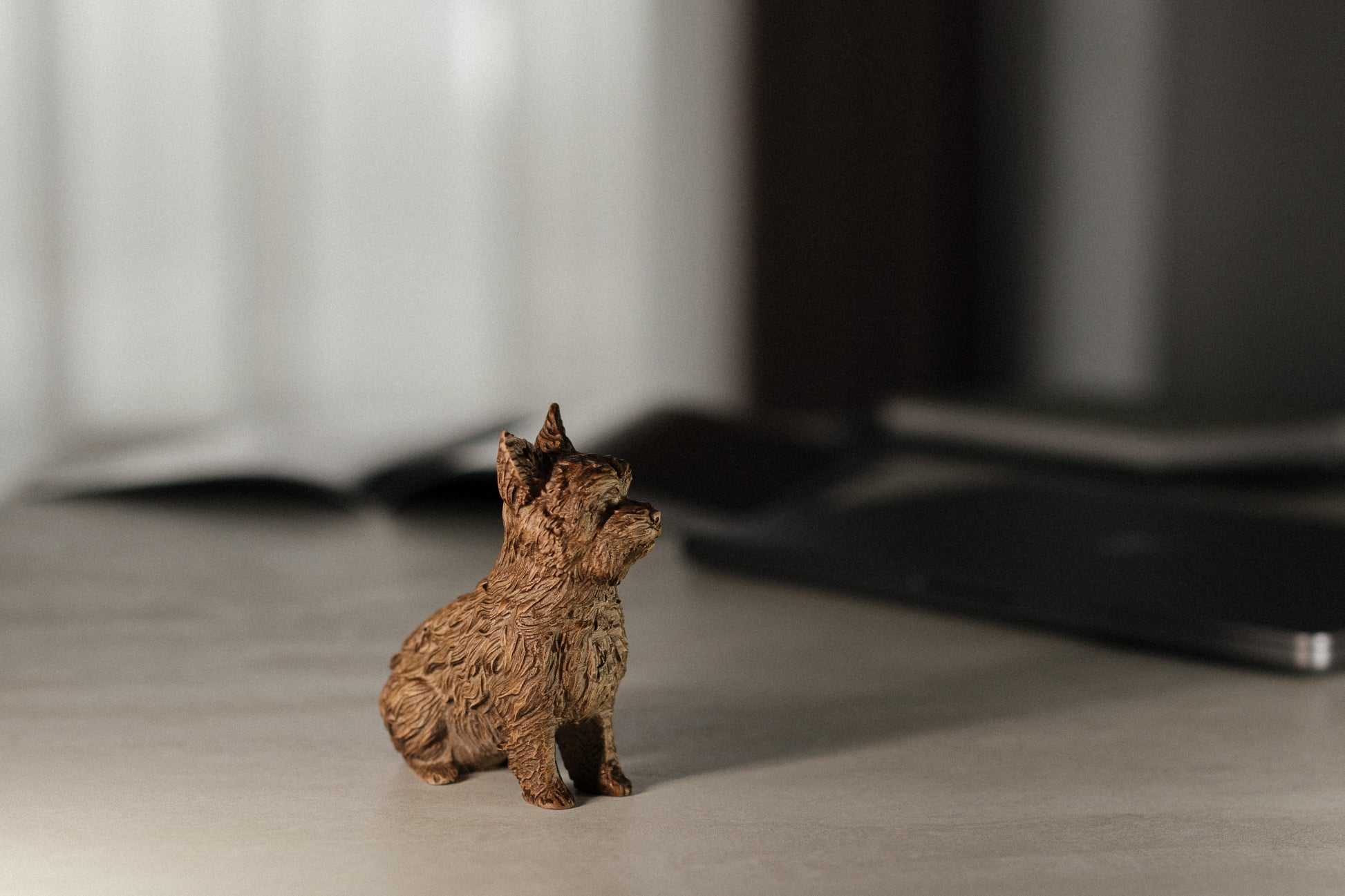 This charming figurine of a Yorkshire Terrier puppy is carved from premium beechwood using high-precision CNC machinery and lovingly refined by hand. The detailed texture captures the soft, silky fur and signature alert expression of the beloved Yorkie breed. Its compact size and lifelike craftsmanship make it an ideal addition to any home decor or a thoughtful gift for dog enthusiasts.